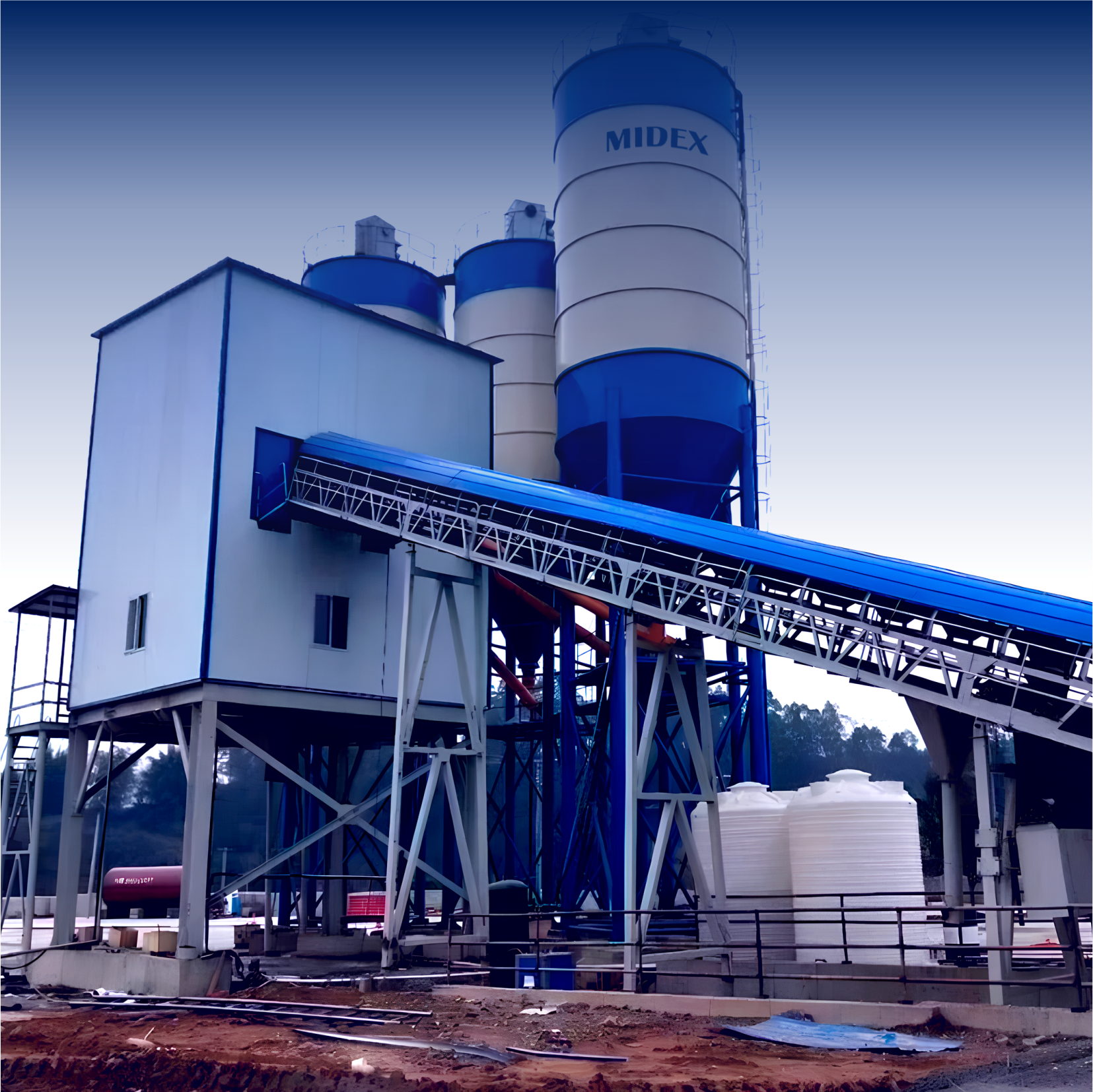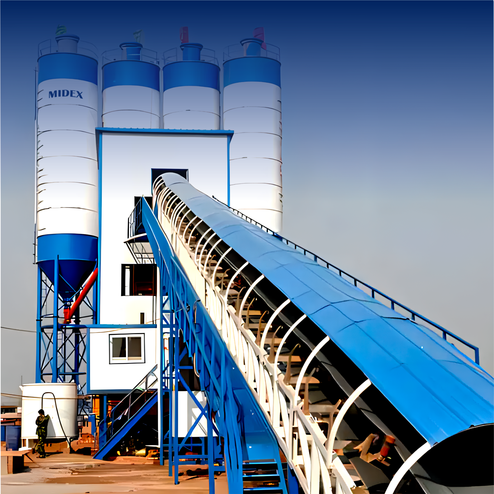 🔹 Aggregate Feeding System: Belt conveyor